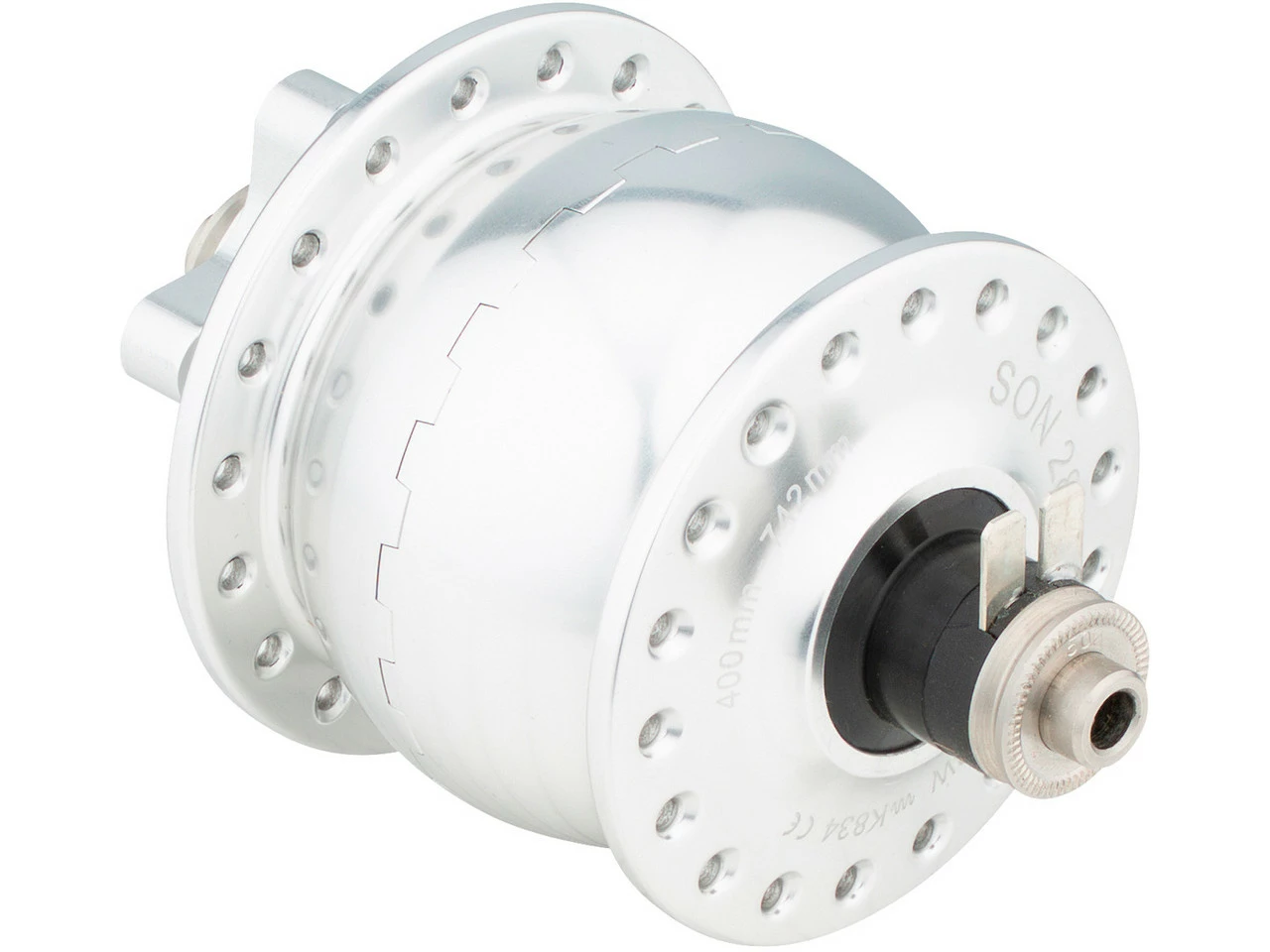 Der SON 28 ist ein universell für alle Laufradgrößen von 16″ bis 29″ zugelassener Nabendynamo. Die Nennleistung erreicht er im 28″ -Rad bei ca. 16 km/h. Damit ist er zu empfehlen, wenn bei langsamer Fahrt besonders viel Licht benötigt wird oder andere Geräte betrieben bzw. deren Akkus geladen werden sollen. Im Vergleich zum Vorgänger Son klassik konnten die Leerlaufverluste um ca. 15 % und das Gewicht um 140 g verringert werden.